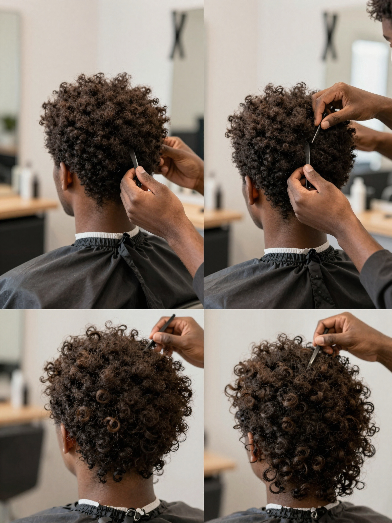 Hydrated, defined curls with a focus on healthy, touchable texture. A shape that flatters the client’s features and celebrates their natural pattern with a premium finish.