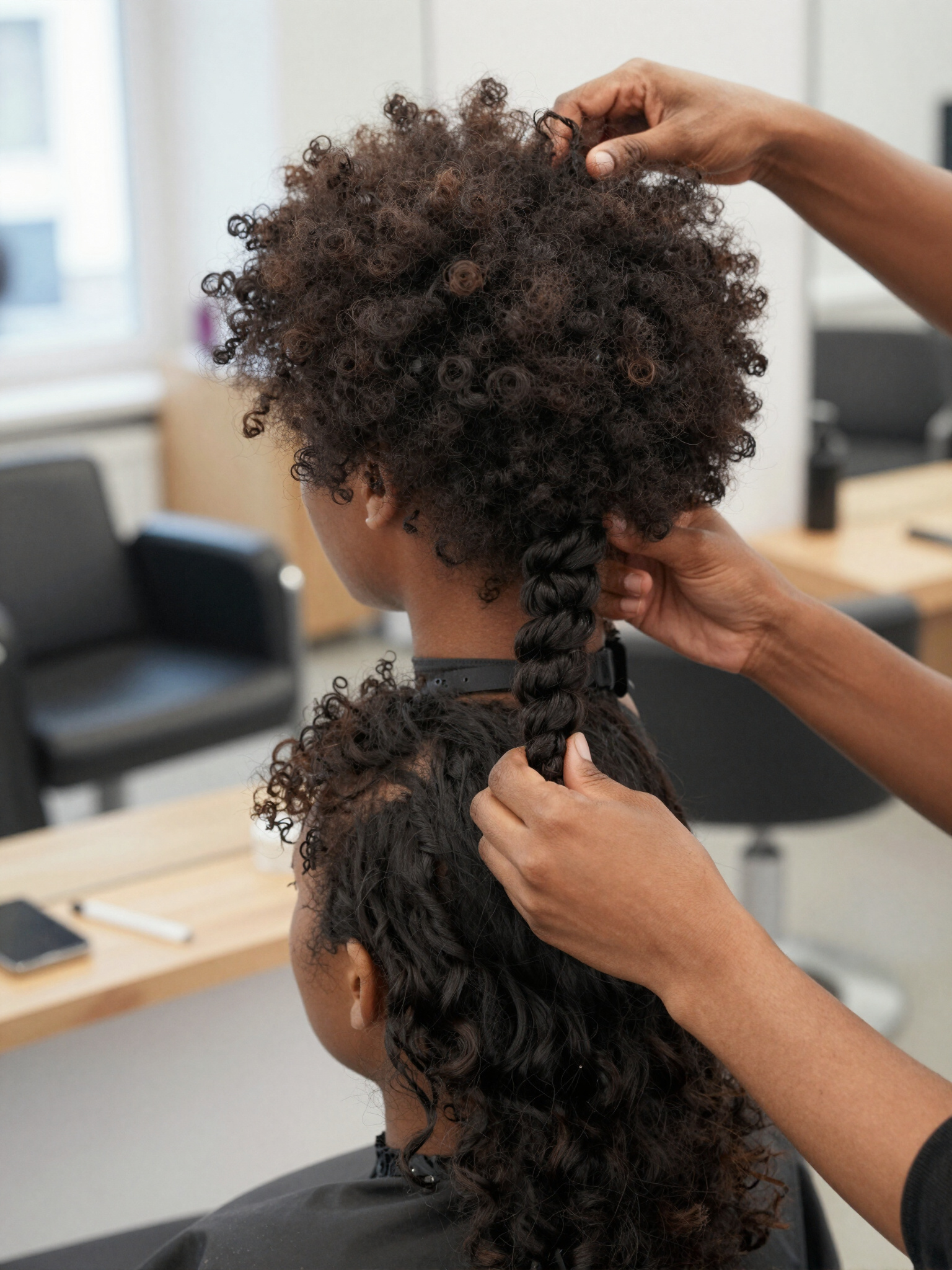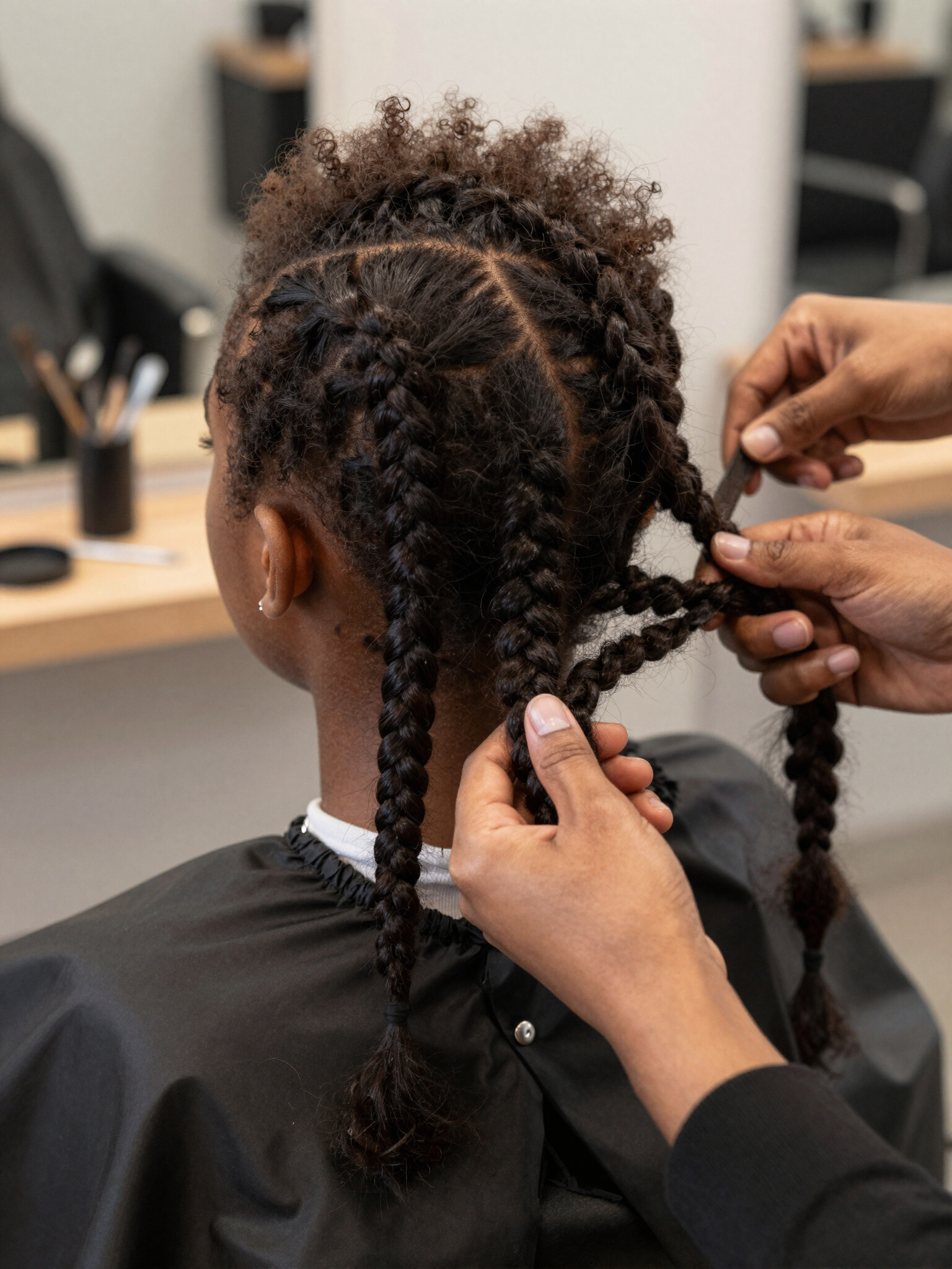 Gentle, child-friendly braids designed to protect young natural hair. Soft tension, neat parts, and a fun, polished look that keeps hair safe and parents reassured.